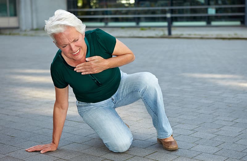 Injured ribs. Bruised or fractured ribs from a fall or accident can also cause chest pain.