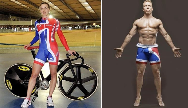 Compare, for example, the leg musculature of track cyclists Victoria Pendleton and Chris Hoy — the difference between them is striking.