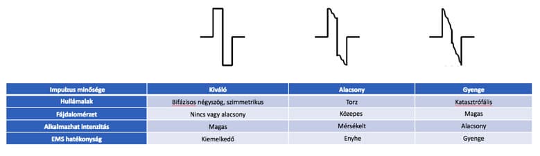 The "soul" of TENS and every other electrotherapy treatment is the impulse. Numerous medical studies confirm that one of the most important elements of effective TENS treatment is the most perfect square pulse possible. The impulse waveform produced by cheap devices does not even approach a square wave (see the right-hand impulse on the diagram).